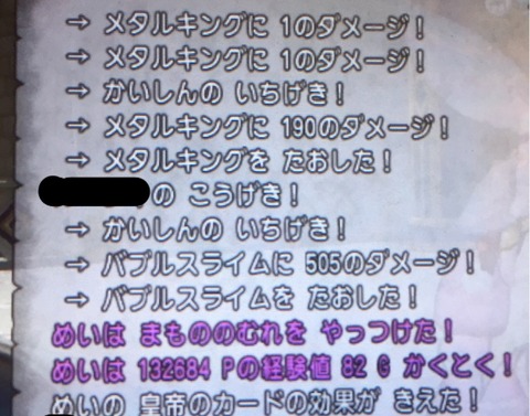 メタキンチケット1枚につき、経験値は132,684P(当たった敵の経験値含む)でした。