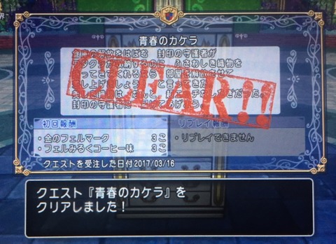 解放のカギを使って中に入り、封印の守護者からクエスト『青春のカケラ』を受注します。