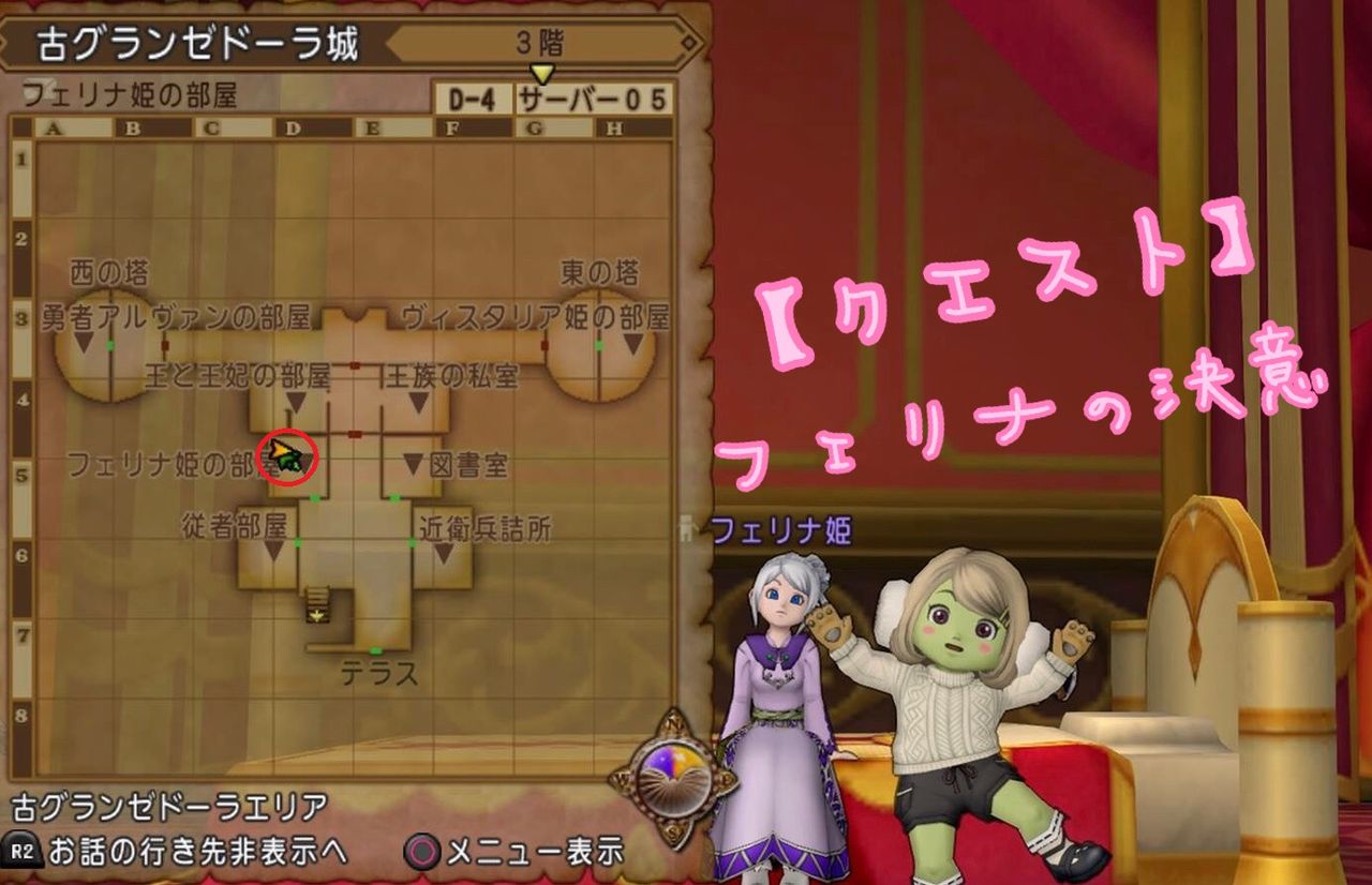 ①古グランゼドーラ城の3階(D-4)にいるフェリナ姫から受注