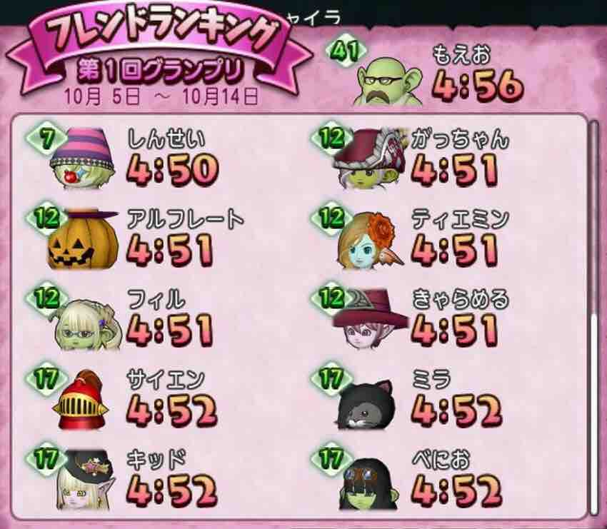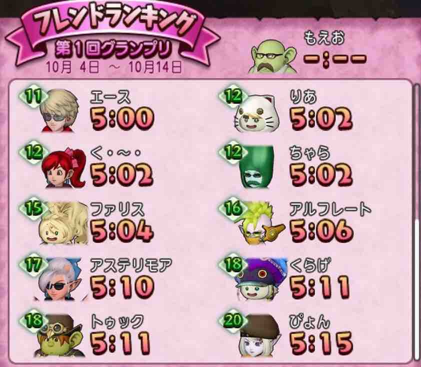 賞品獲得は、『もえお』のフレンドランキングに表示されている方のみ(最大20名まで)とさせて頂きます。