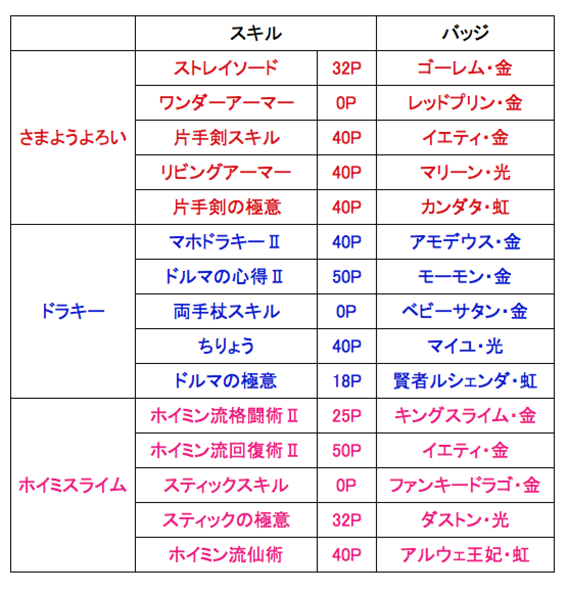 ③キラポン・天使・祈りのスキルを持つ回復役のホイミンを用意する。