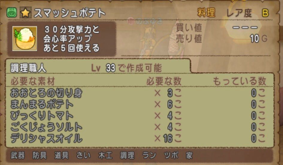 ★検証時の職人レベル:調理職人Lv53
