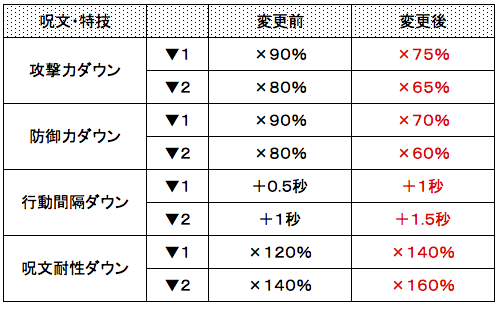 ★弱体系の呪文・特技修正