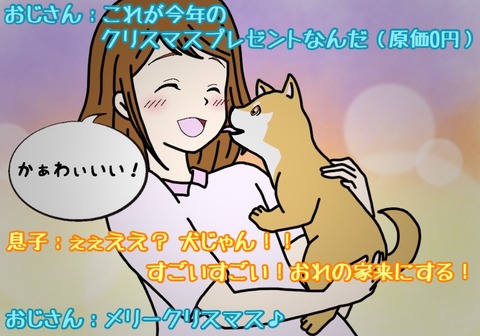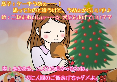 ご馳走とケーキとプレゼントに、子供たちが大喜びしているのを見て、安価で喜んでもらえて本当に良かったな と、能天気にはしゃぐおじさん。