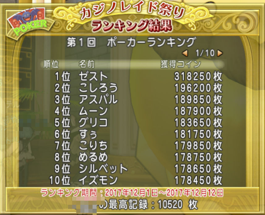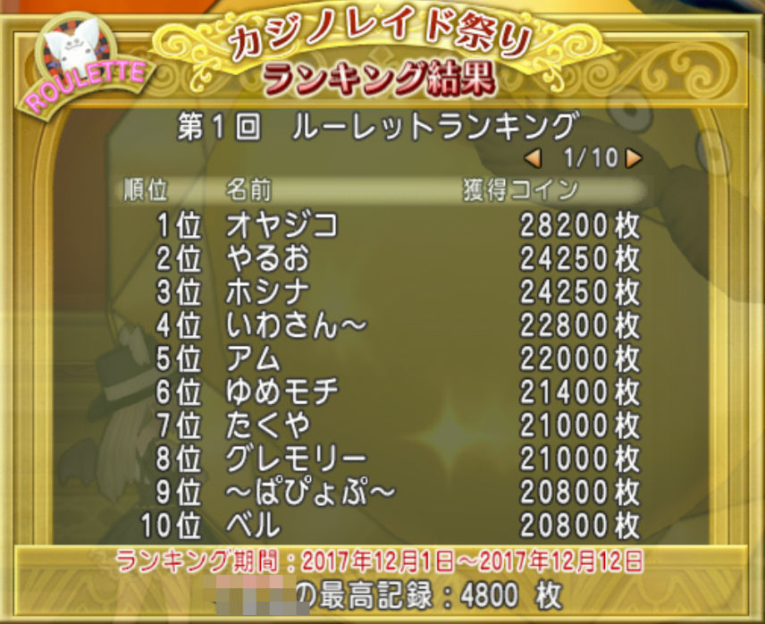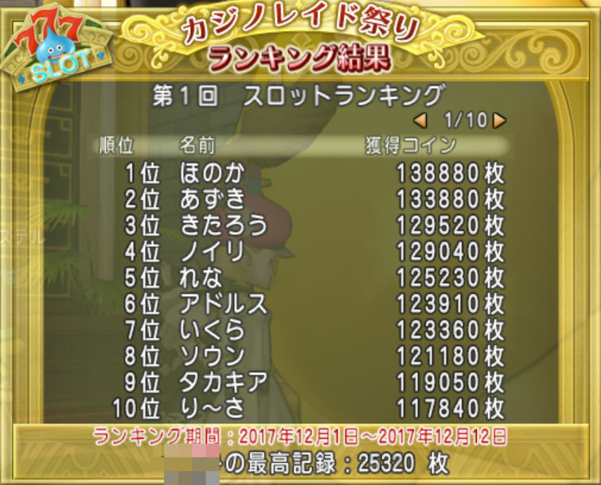 1位:28,200枚!一点置きを8、9回くらい当てないと出ない数字ですよね。。スゴイ!