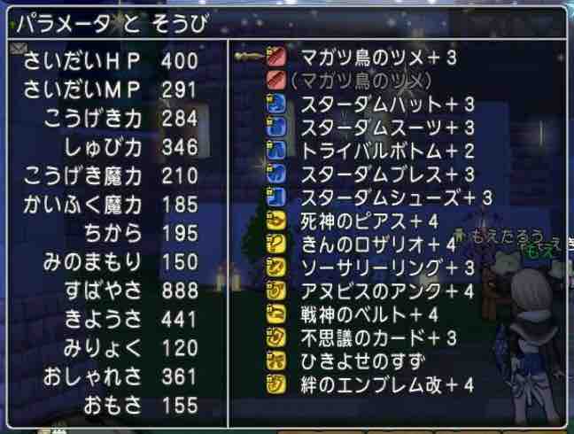 ※ マガツ・ツメ雷ベルト・ソーサリー・攻魔200以上は確保