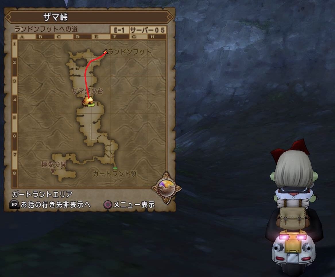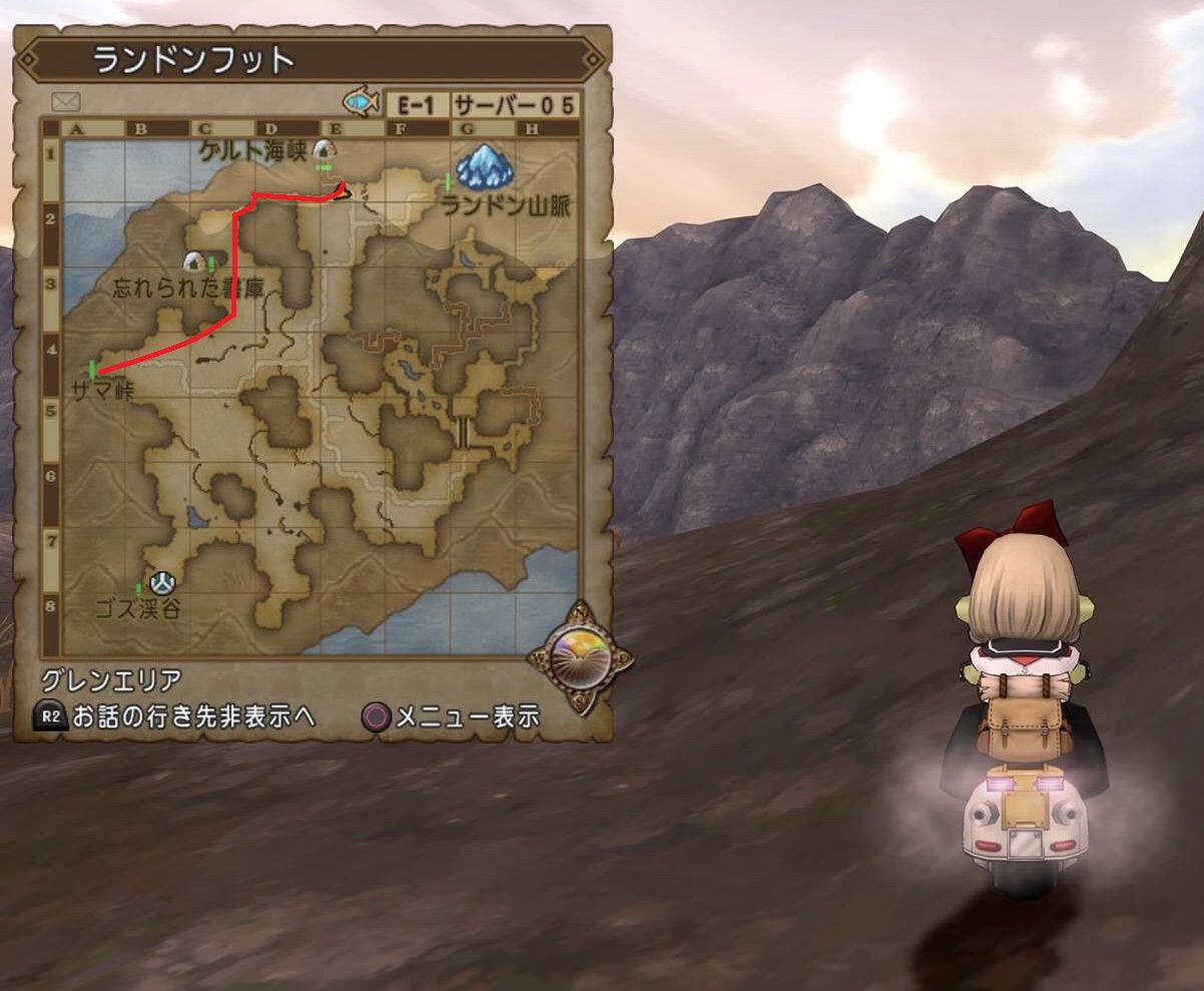 グレン領東(START)→ゲルト海峡→ランドンフット→ザマ峠→ザマ峰火台(GOAL)