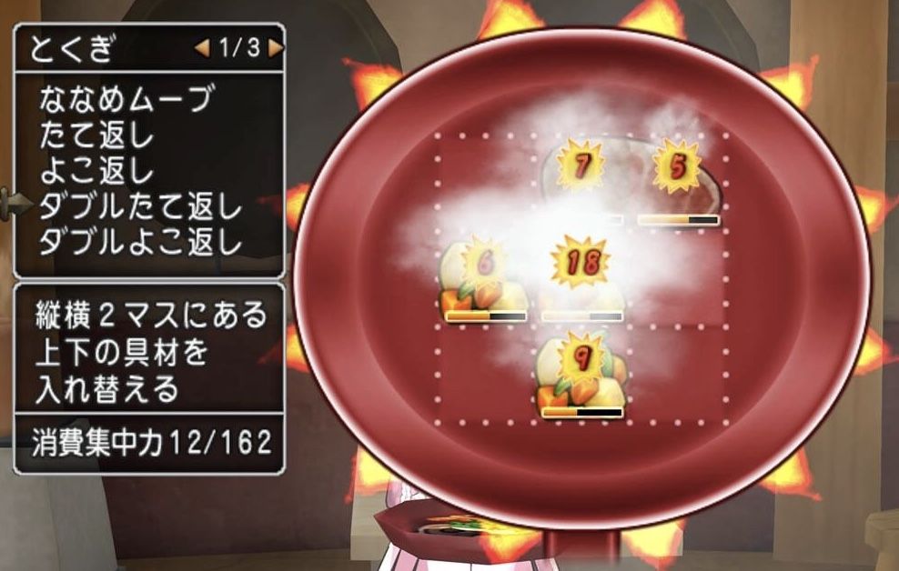 左右の内、焼きが浅い方を上段の真ん中に配置!(会心威力アップの候補に入れる為)