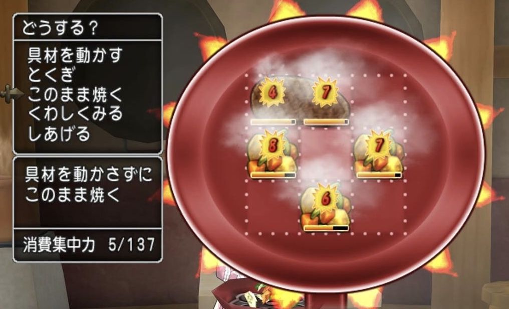 「この箇所にある具材を、1ゲージ目後半の状態で迎え『会心焼き』をする!」