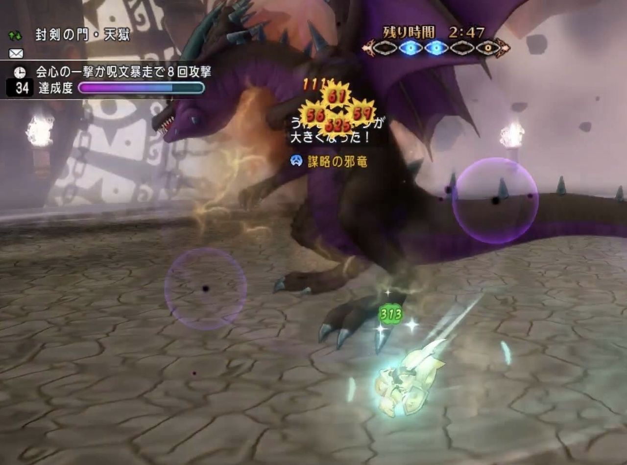 ③60秒以内に、会心攻撃か呪文暴走を8回→片手剣特技、フローズンバード(ブーメラン)、会心まいしんラップ(踊り子)、はやぶさ改二刀流(バト)、ツメ通常攻撃、超暴走魔法陣など