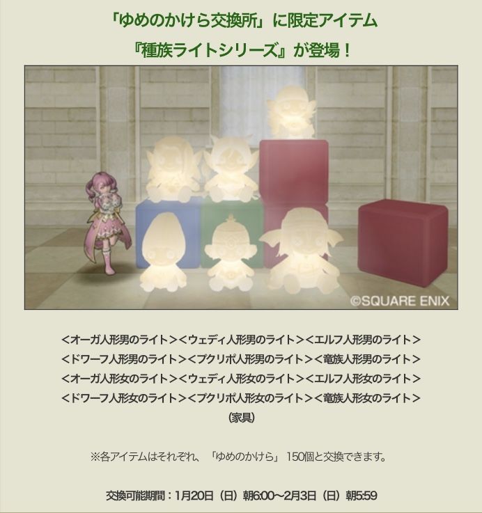 ゆめのかけらの交換品に限定アイテムも登場します。